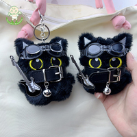 Punk ches Punk gitar gözlük gözlük siyah sevimli şanslı kedi peluş anahtarlık ile çan Plushy dolması yavru kediler aksesuarları